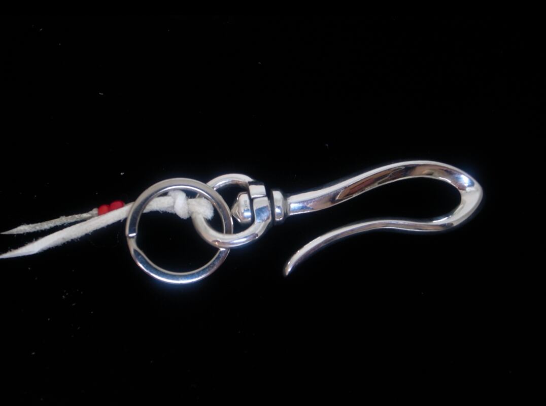 Silverに刻印を施した、シンプルで飽きのこないデザインのキーフックです。 アクセントに鹿革ヒモ、ビーズを使用しています。 ずっしりとした質感で、貧弱にならない重厚感のある仕上がりです。 ベルトループやベルトに直接通してお使いいただけます。 素材の特性上の経年使用によって生まれる色の変化という味が楽しめます。 ※こちらの商品は職人のハンドメイドです。 店頭在庫がない場合でもお作りすることができますため、ページ上で在庫を表示している商品でも在庫がない場合がございます。