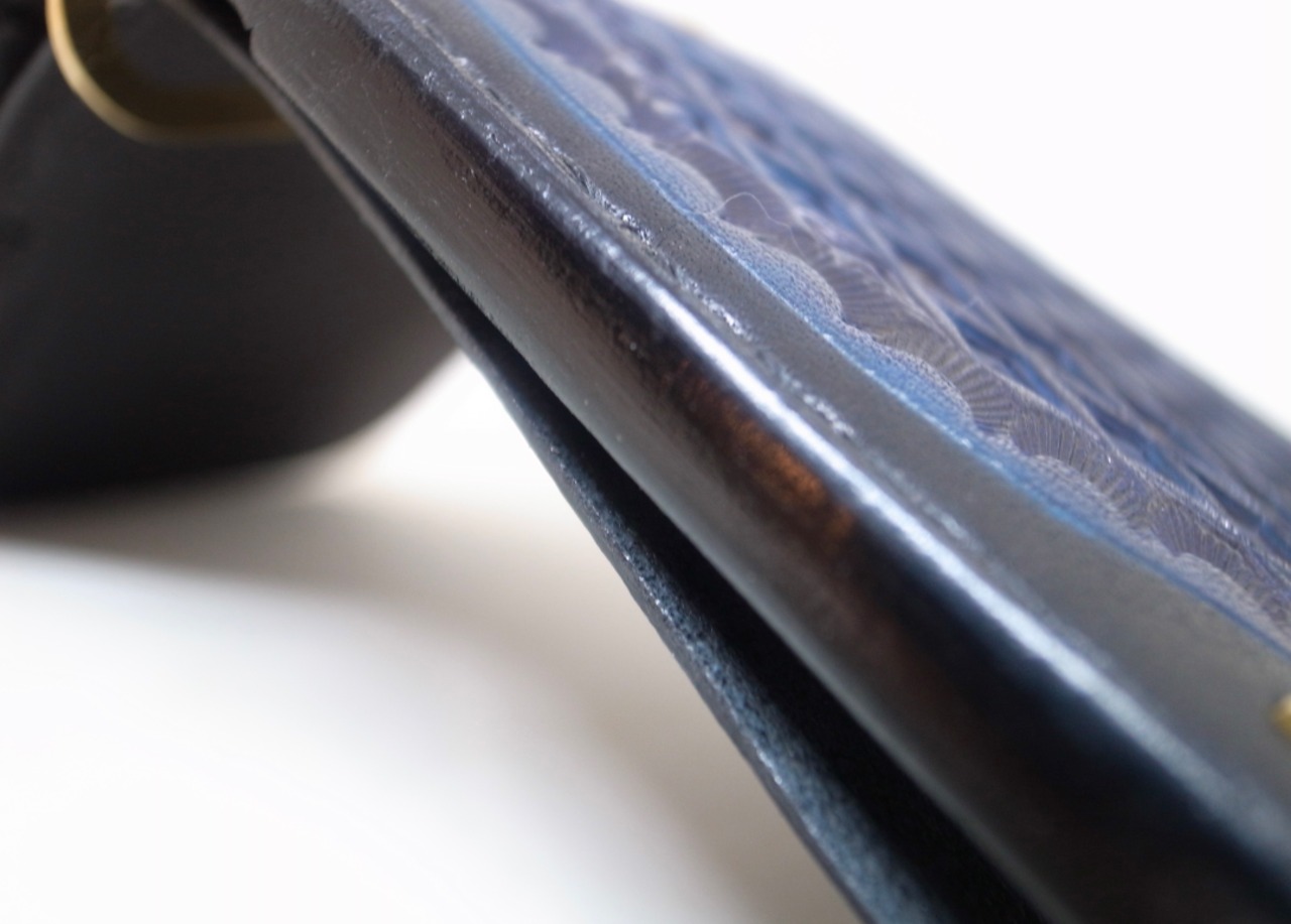 裁断から柄の打ち込みを1つ1つ深くシャープに打ち込む為に表革を3.2と特殊なレザーを使用
