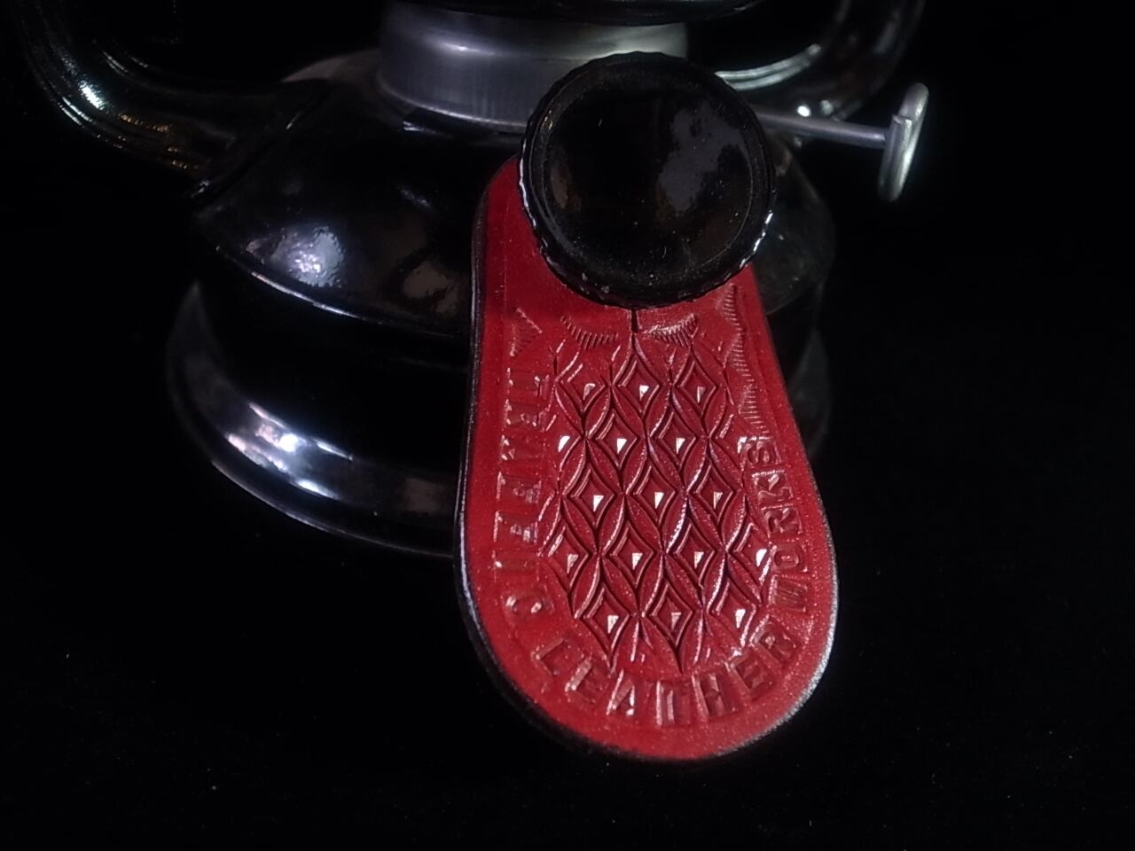 1つ1つ丹念に打ち込み深く打ち込む為に特殊に漉きだした3.3ミリ厚革を使用し革が回転しないように小さめの設計にしておりますので、少し水を浸けて装置して下さい