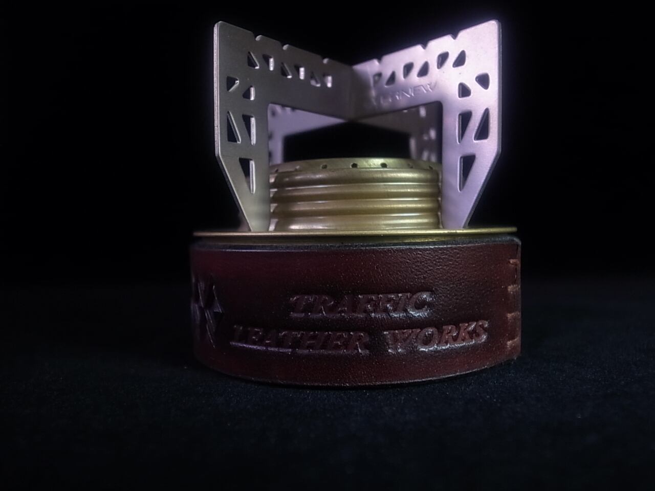 4.0厚のレザーに深々と柄を打ち込み厚さも有るため火が付いたままでも持てると好評です。