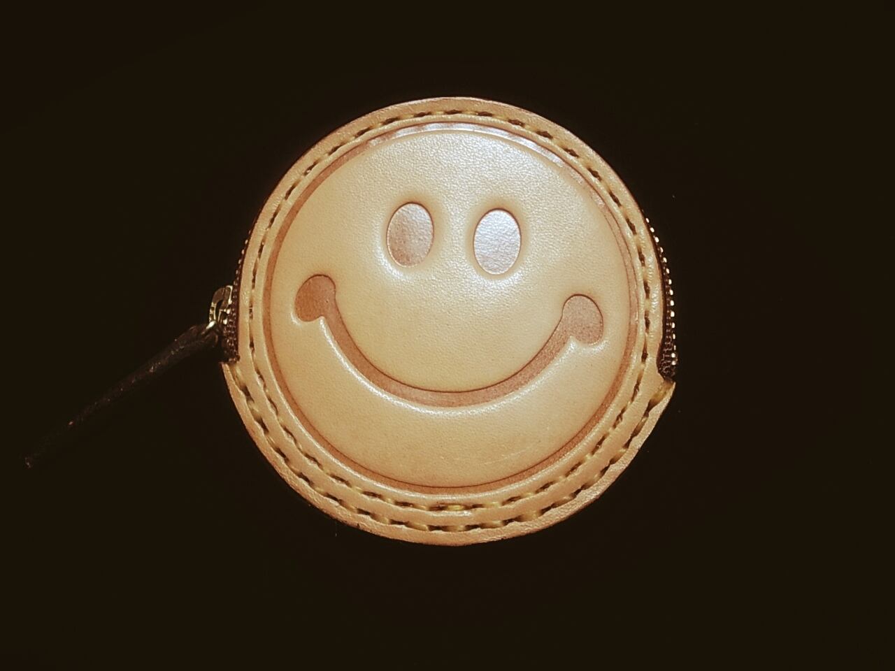 スマイルマークを型押しをしてコイン内部には小銭が引っからない様にレザーライニングを装備し
