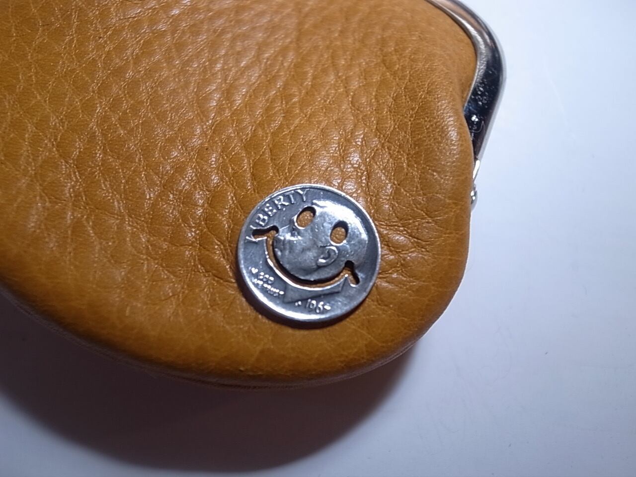 こちらはハンドメイドに寄り天然レザーになり形も個体さが有りますのでご了承下さい。アメリカのコインを糸鋸にて切り出す職人技を生かした作品に成ります。
