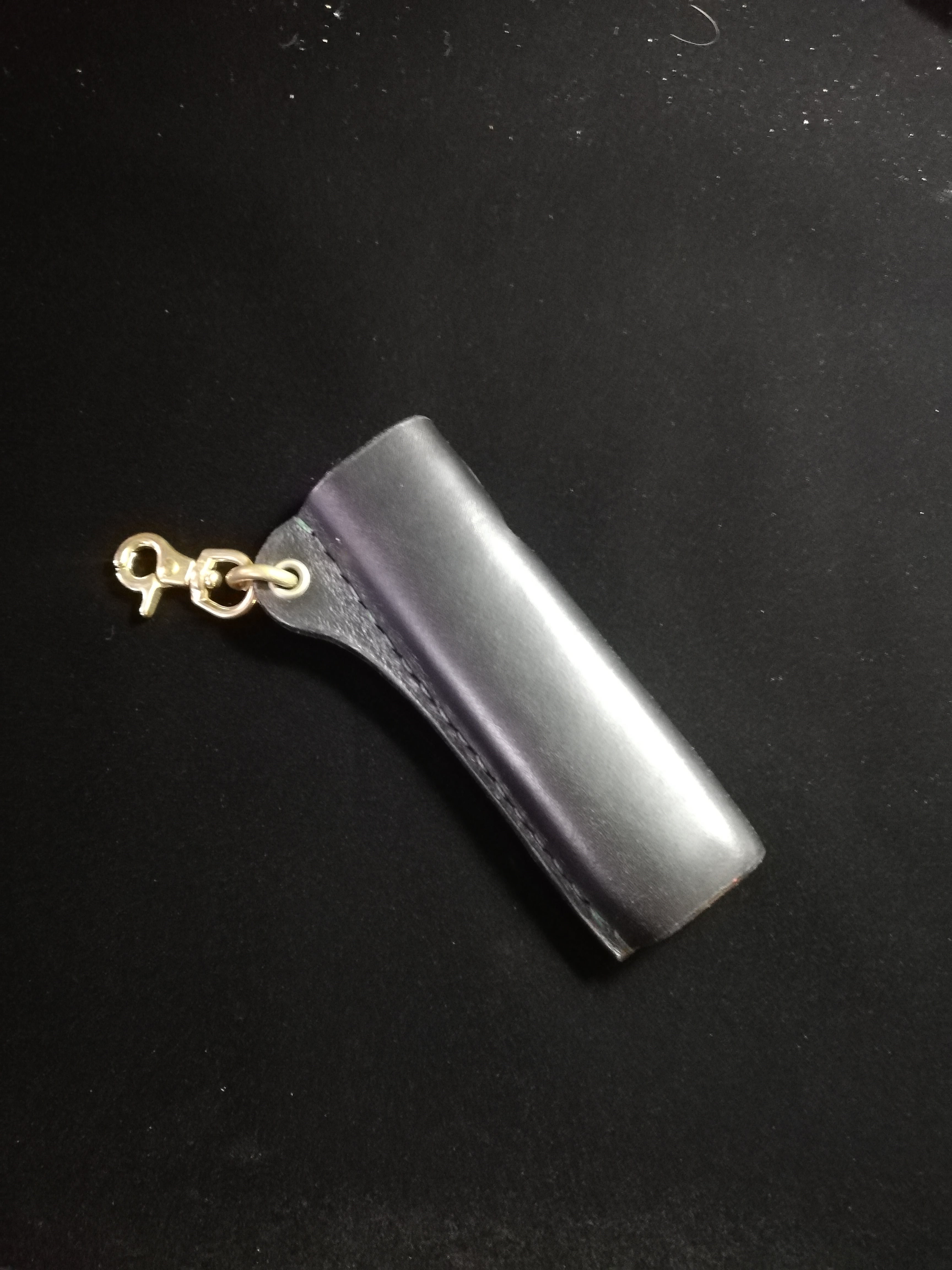一般的に薄いレザーが多いですが耐久性や握り心地が良い2,5厚にて作成