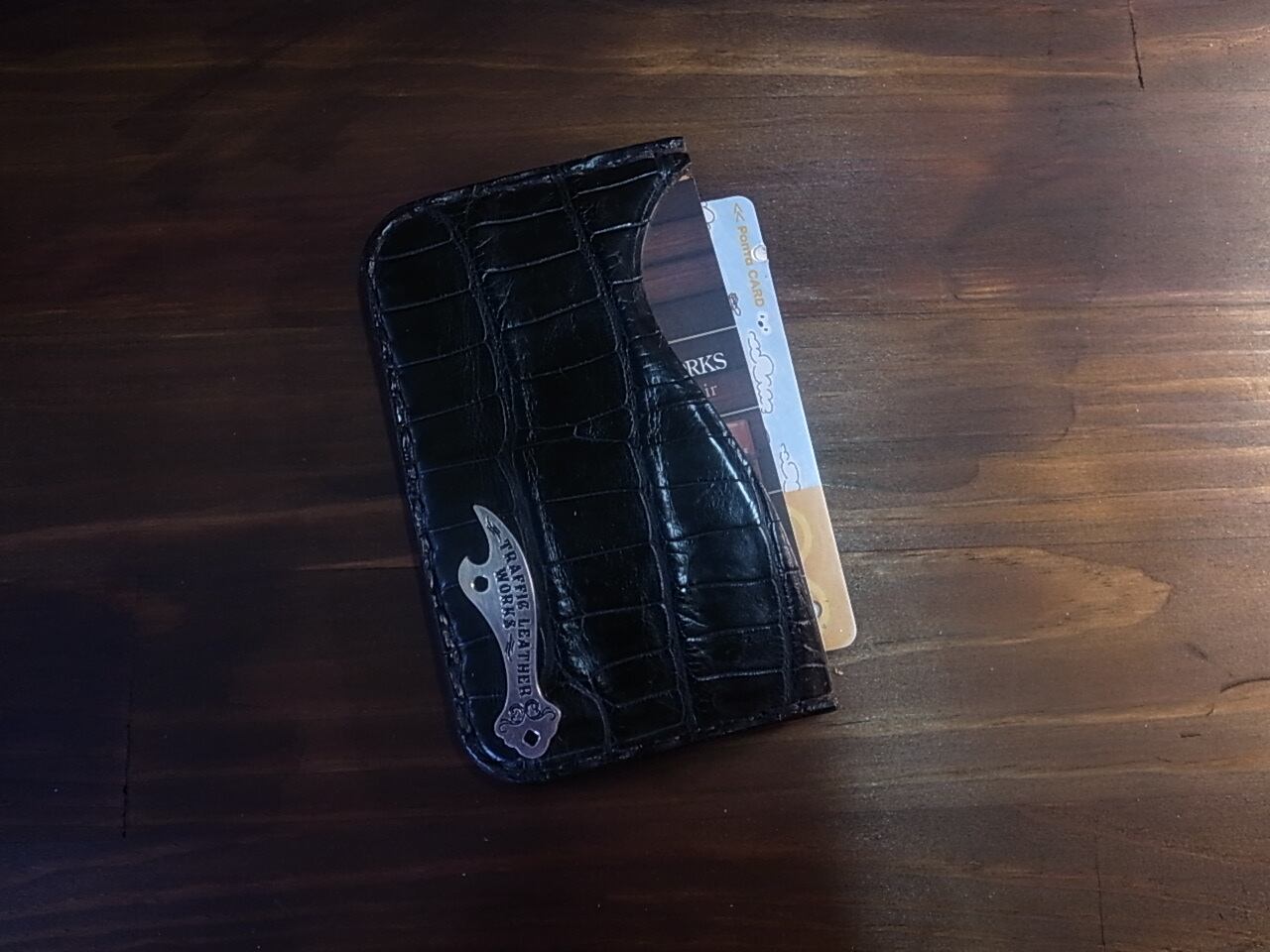 ◆ detail 厳正したナイルクロコの腹を使用した名刺入れです。 独自の製法で作り出された仕様で、スッキリとしながら、通常の名刺であれば15枚ほども収納可能です。