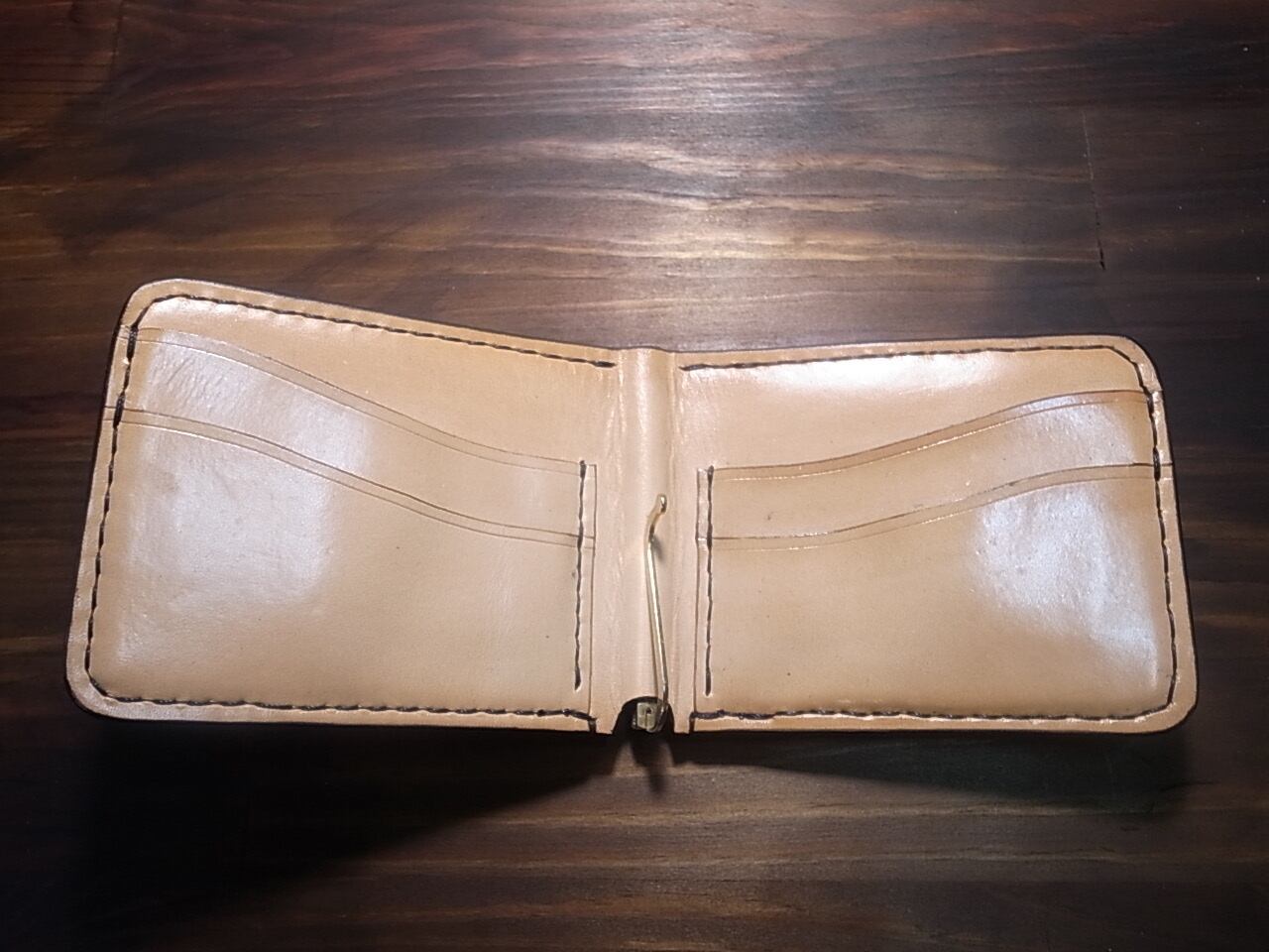 バックポケットを1枚装備してお札が見える方も居ると思いレザーの下敷きをお付けいたしております。