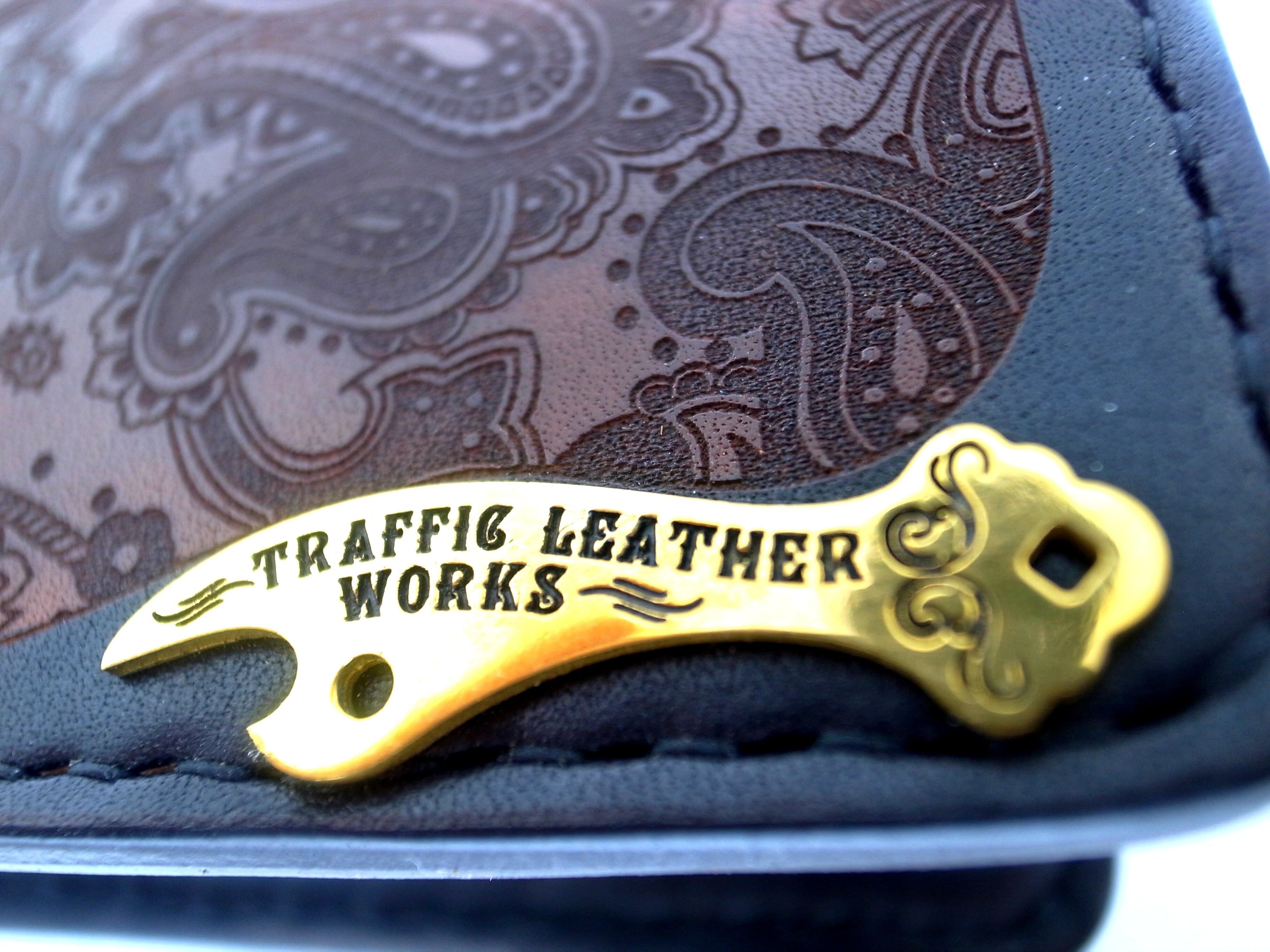 独自技術にてオリジナルペイズリーを上質なレザーに焼き付けスタイリッシュなマネークリップ。
