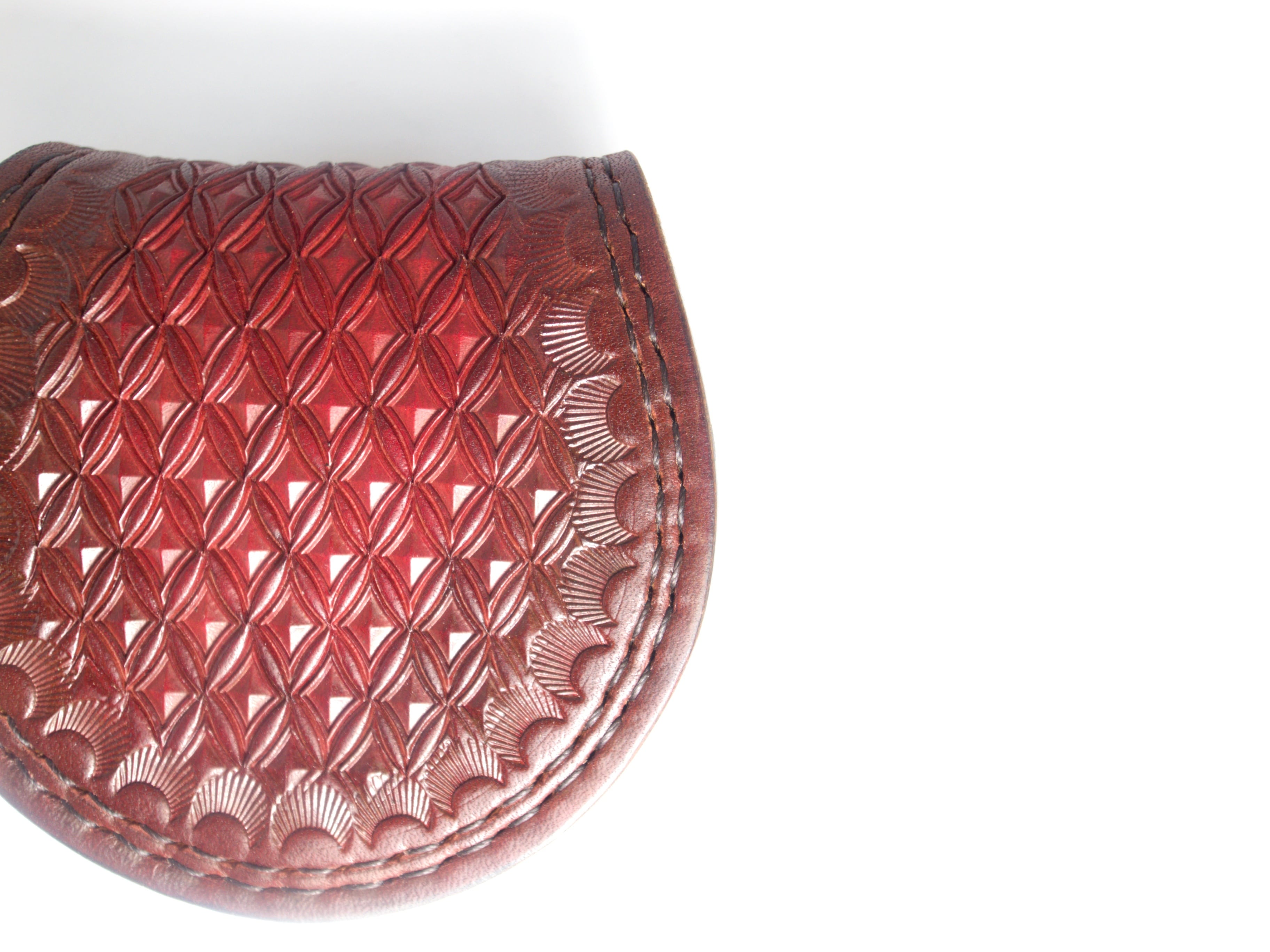 手縫いと手染めで作り上げられたこちらのcoincaseは、一点一点に職人の技術と愛情が込められています。スタンプワークも深く、丁寧に作られたデザインが、使い手に個性と華やかさを与えます。