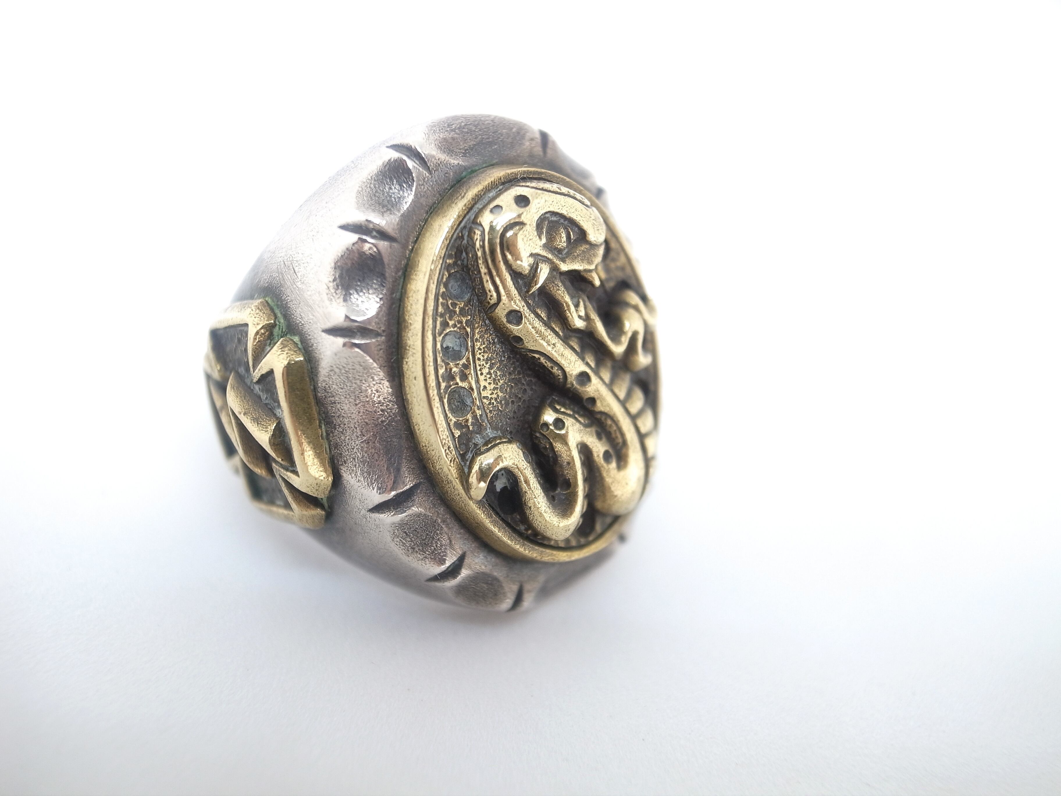 大胆かつエキゾチックな雰囲気が特徴です。緻密なディテールと手作りの手法によって生み出されたこのリングは、他にはない個性と存在感を放ちます。