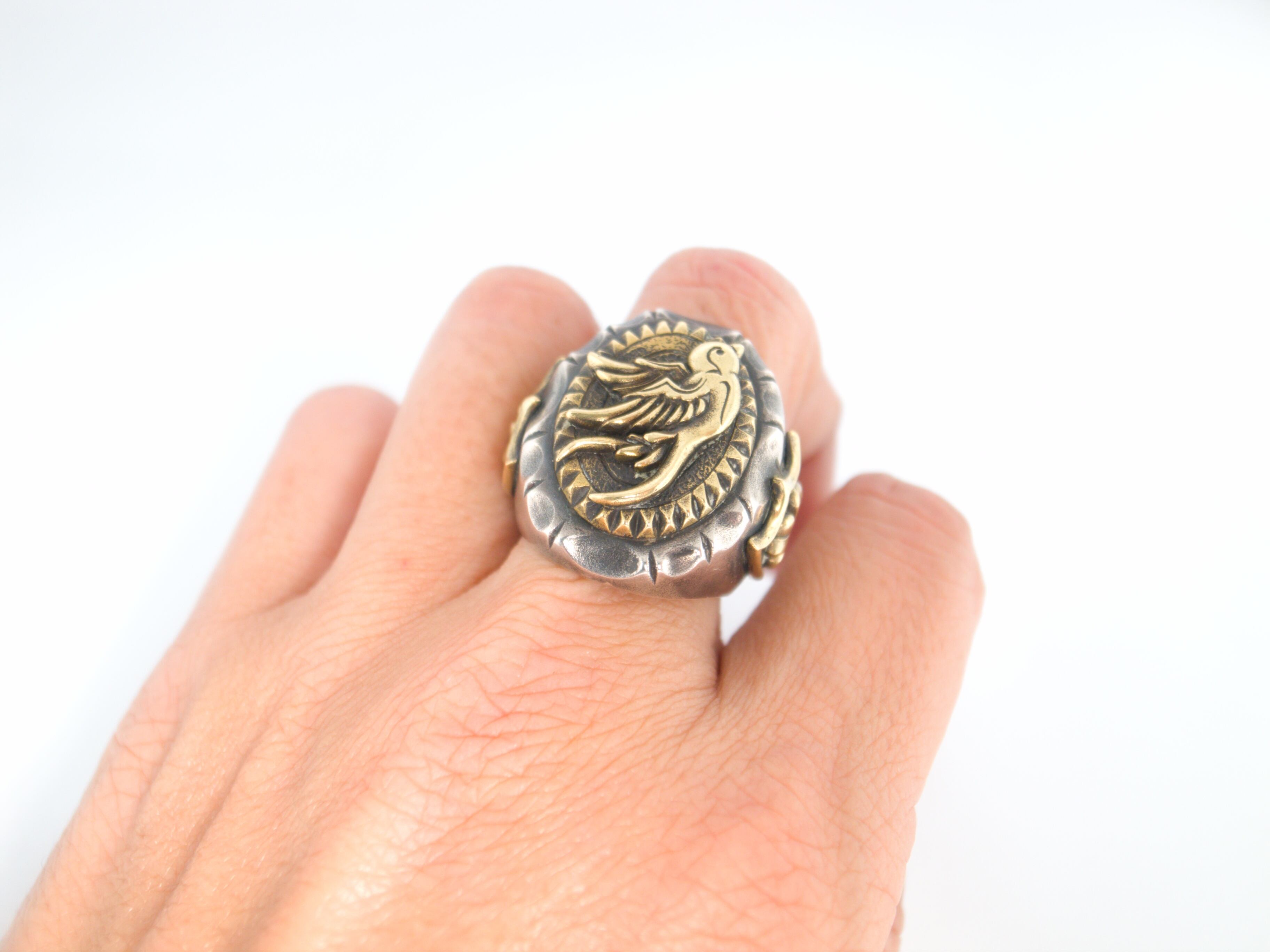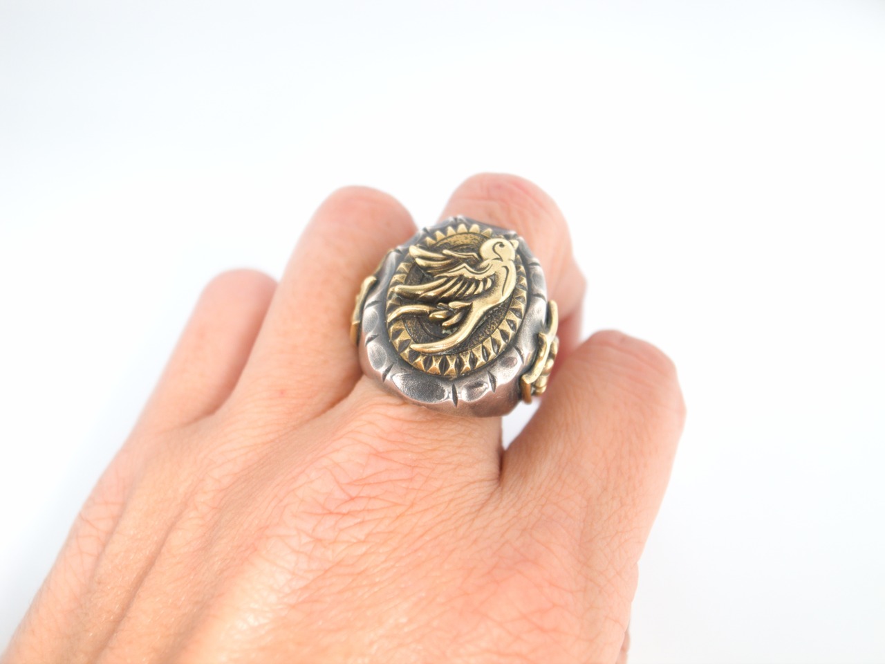 大胆かつエキゾチックな雰囲気が特徴です。緻密なディテールと手作りの手法によって生み出されたこのリングは、他にはない個性と存在感を放ちます。