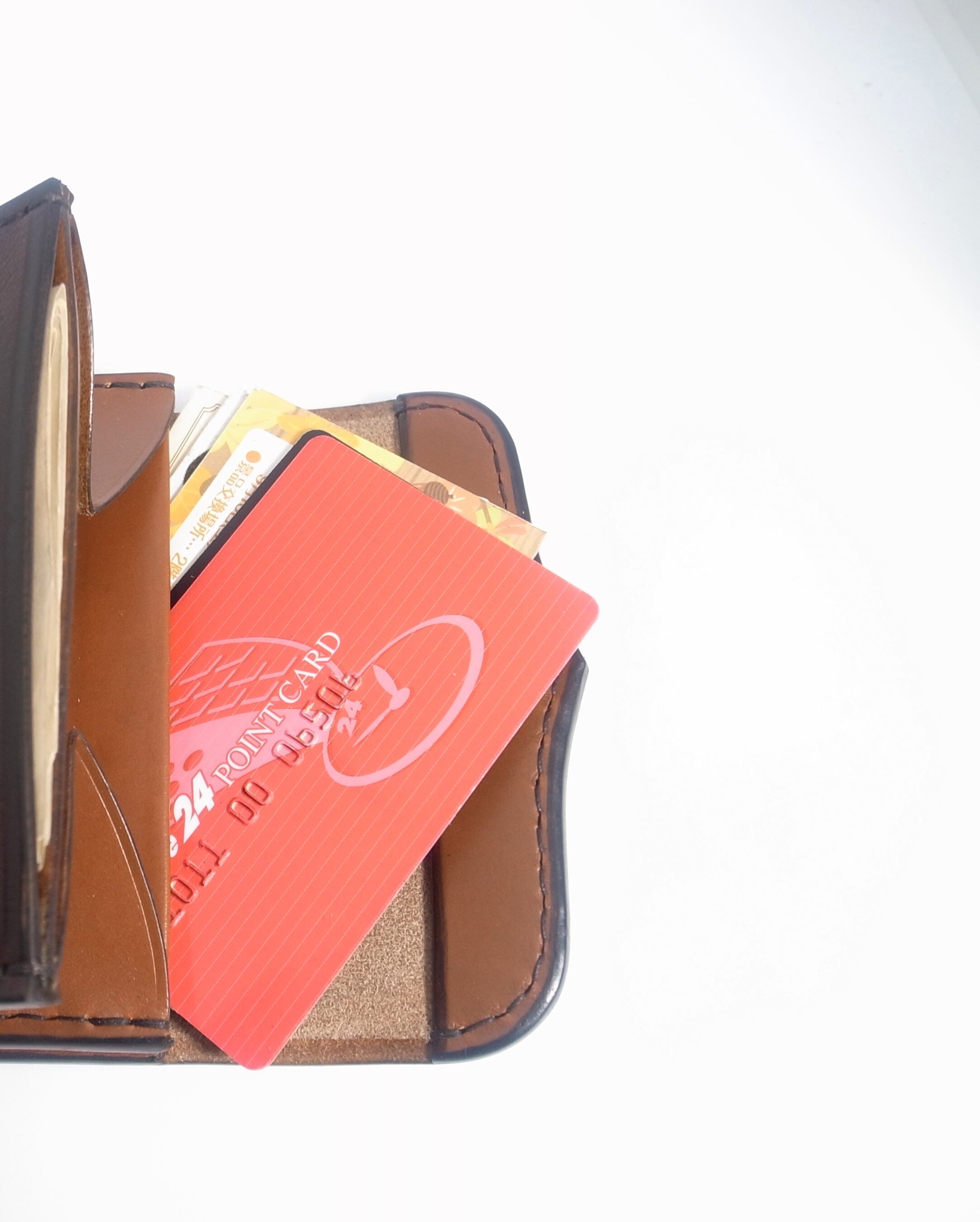 このコンパクトウォレットは、上質なレザーでハンドメイドされた一品です。小さいながらも収納力は抜群で、カードやお札、小銭をしっかりと整理することができます。コンパクトなサイズ感で手のひらに収まるので、ポケットやバッグにもスッキリ収まります。