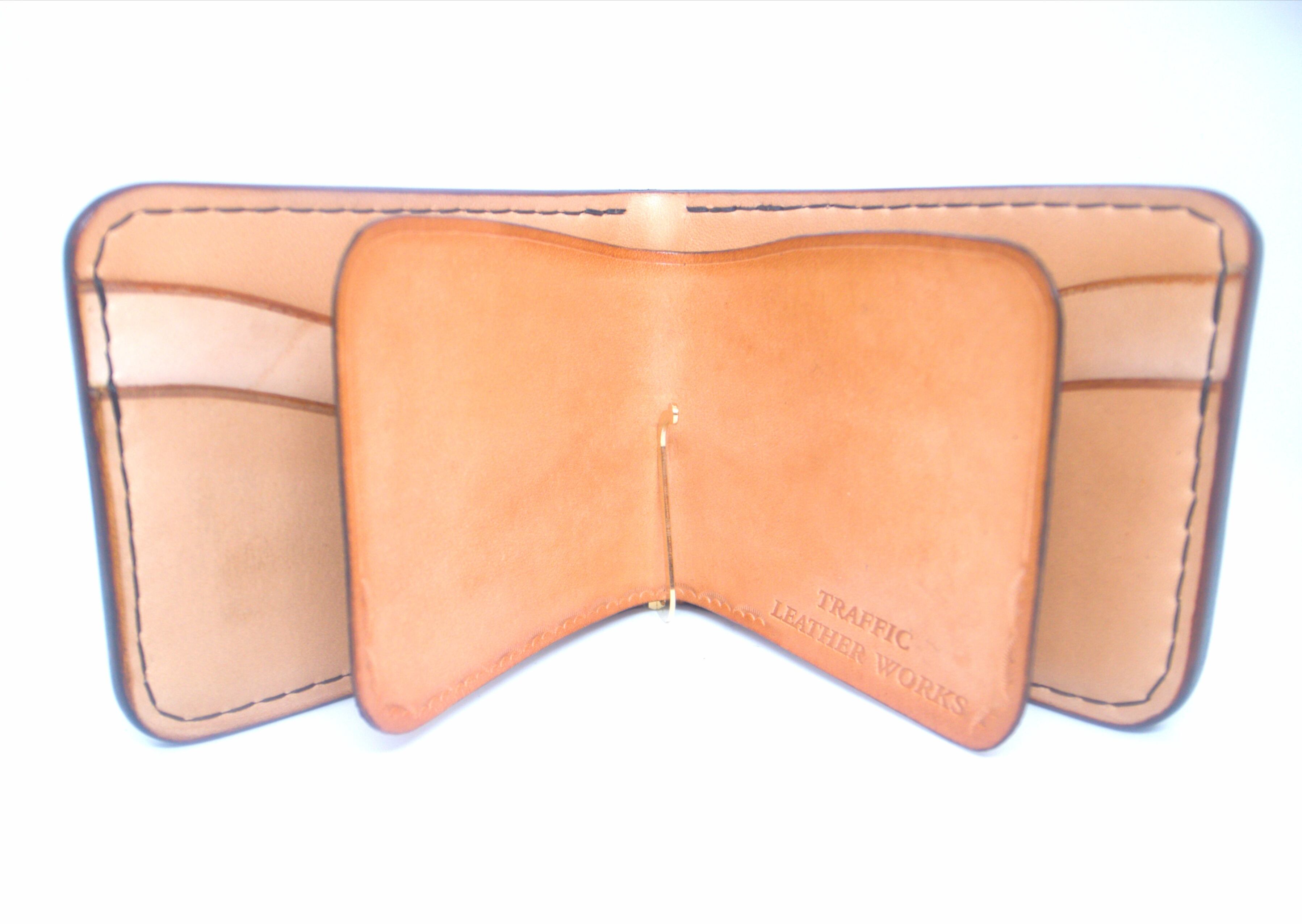 バックポケットを1枚装備してお札が見える方も居ると思いレザーの下敷きをお付けいたしております。