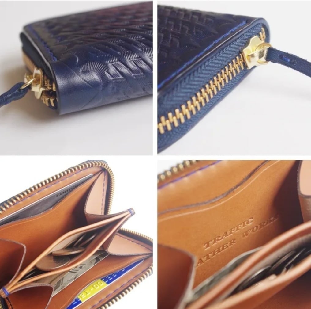 ◆ detail ベンズレザーとイタリアンレザーを使用し、ハンドワークで丁寧に柄を打ち込んだ作品です。手の平サイズですのでお札なども入れてセカンド財布としてもご利用いただけます。 ※こちらの商品は職人のハンドメイドです。 店頭在庫がない場合でもお作りすることができますため、ページ上で在庫を表示している商品でも在庫がない場合がございます。 ご注文確認後に在庫状況と納期をご連絡致しますが、在庫が無い場合につきましてはご入金確認後お届けまでに1ヵ月~2ヶ月程度お時間を頂戴致しますので予めご了承ください。 セミオーダー対応 お好みの糸色をお選びいただけます。 見本はこちらをご覧ください。