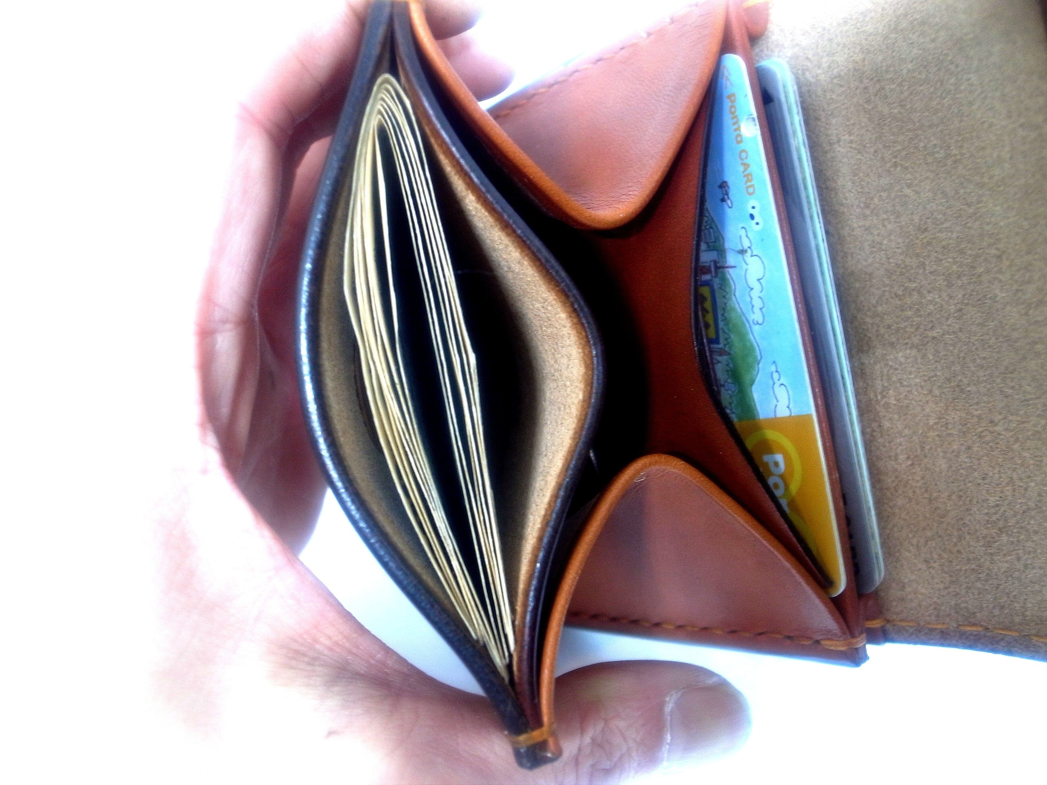 このコンパクトウォレットは、上質なレザーでハンドメイドされた一品です。小さいながらも収納力は抜群で、カードやお札、小銭をしっかりと整理することができます。コンパクトなサイズ感で手のひらに収まるので、ポケットやバッグにもスッキリ収まります。