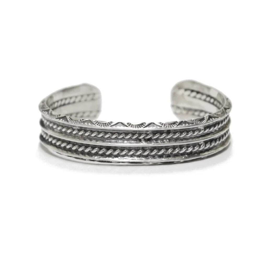シルバー950素材に刻印を施した、シンプルで飽きのこないデザインのブレスレットです。 1点1点を職人がhand stampにて制作致します。 ずっしりとした質感で、貧弱にならない重厚感のある仕上がりです。