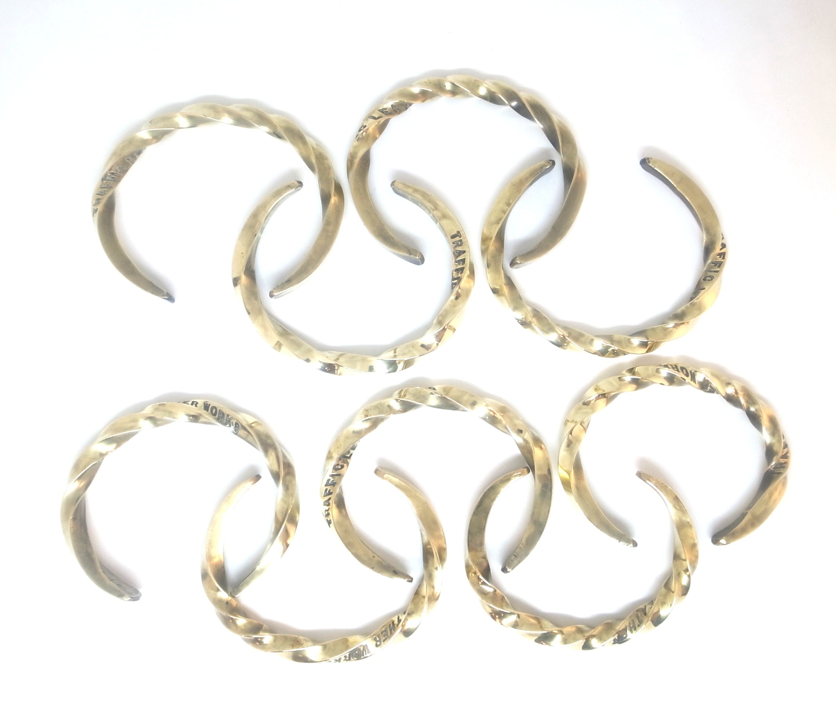 シンプルながらも5ミリ厚と存在感のあるデザインが特徴の真鍮製twistバングルです。